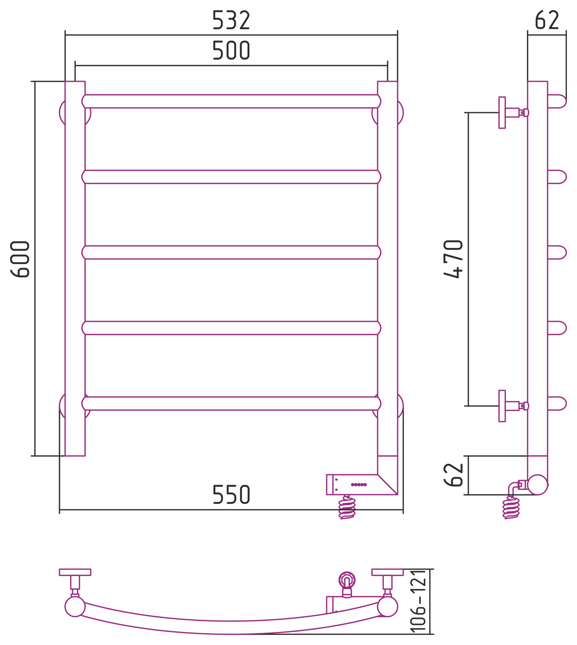 Полотенцесушитель электрический Сунержа Галант 2.0 600x500